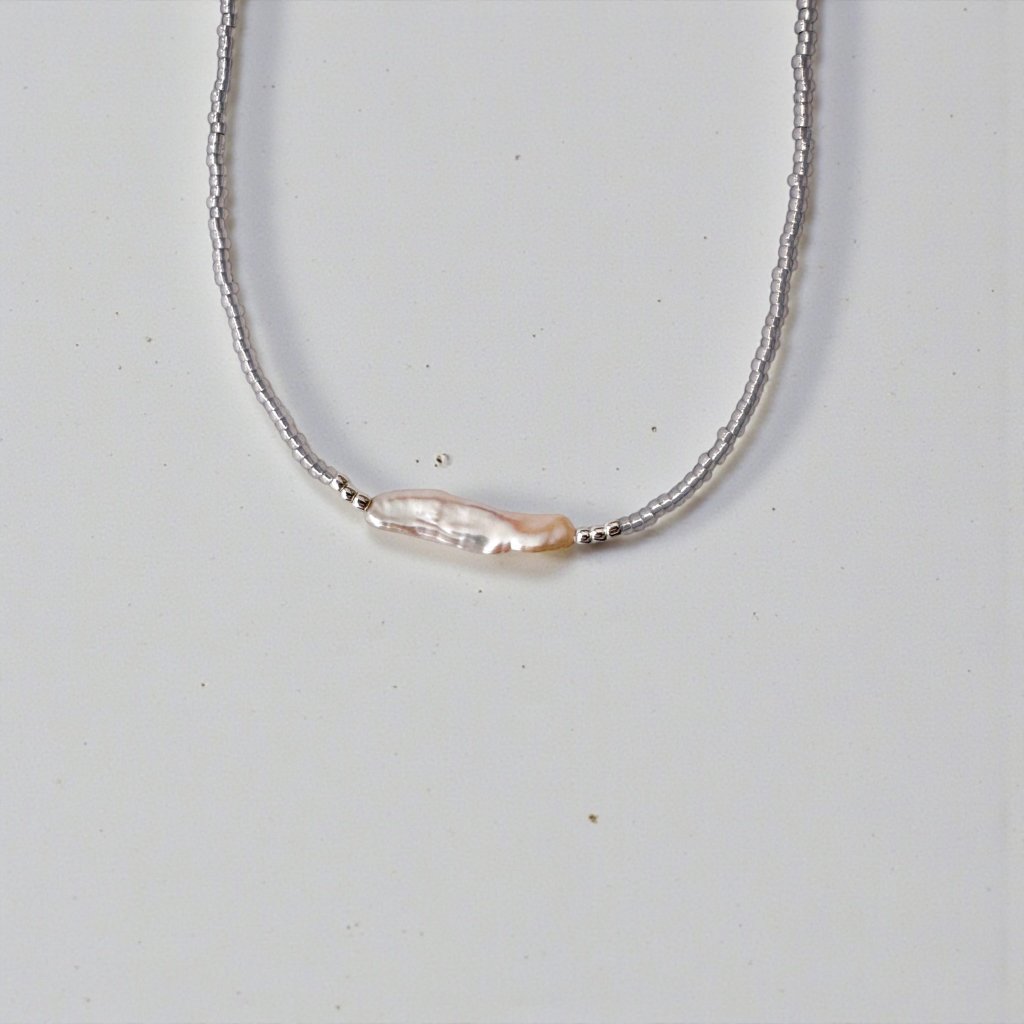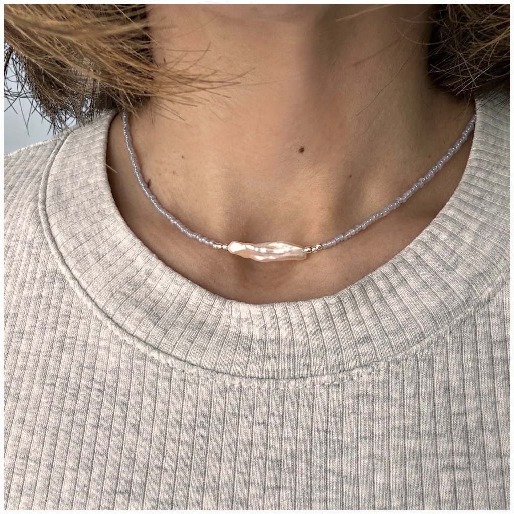 Je vyroben z pravé říční podlouhlé perly, japonských postříbřených a jemně namodralých korálků. Ručně vyrobeno v Česku z pečlivě vybraných materiálů z celého světa. Ideální pro výjimečné příležitosti i pro každý den, kdy se chcete vnést trochu kouzla do každého obyčejného dne.