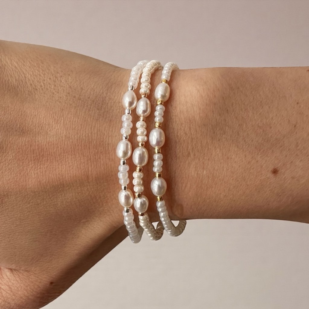 Každá perla je originál a může mít jemně odlišný tvar než ty na fotografii, ale vždy vybírám ty nejkrásnější, které dokonale ladí s celkovým vzhledem náramku.