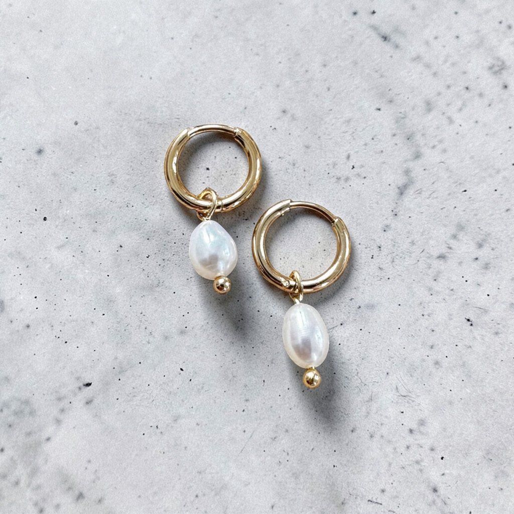 Luxusní náušnice Mini Pearls z nerezové oceli ve zlaté barvě s pravou říční perlou. Délka 2,1 cm, průměr kroužku 1,1 cm, tloušťka 1,5 mm. Ruční výroba z Liberce, exkluzivní elegance s dotekem exotiky.