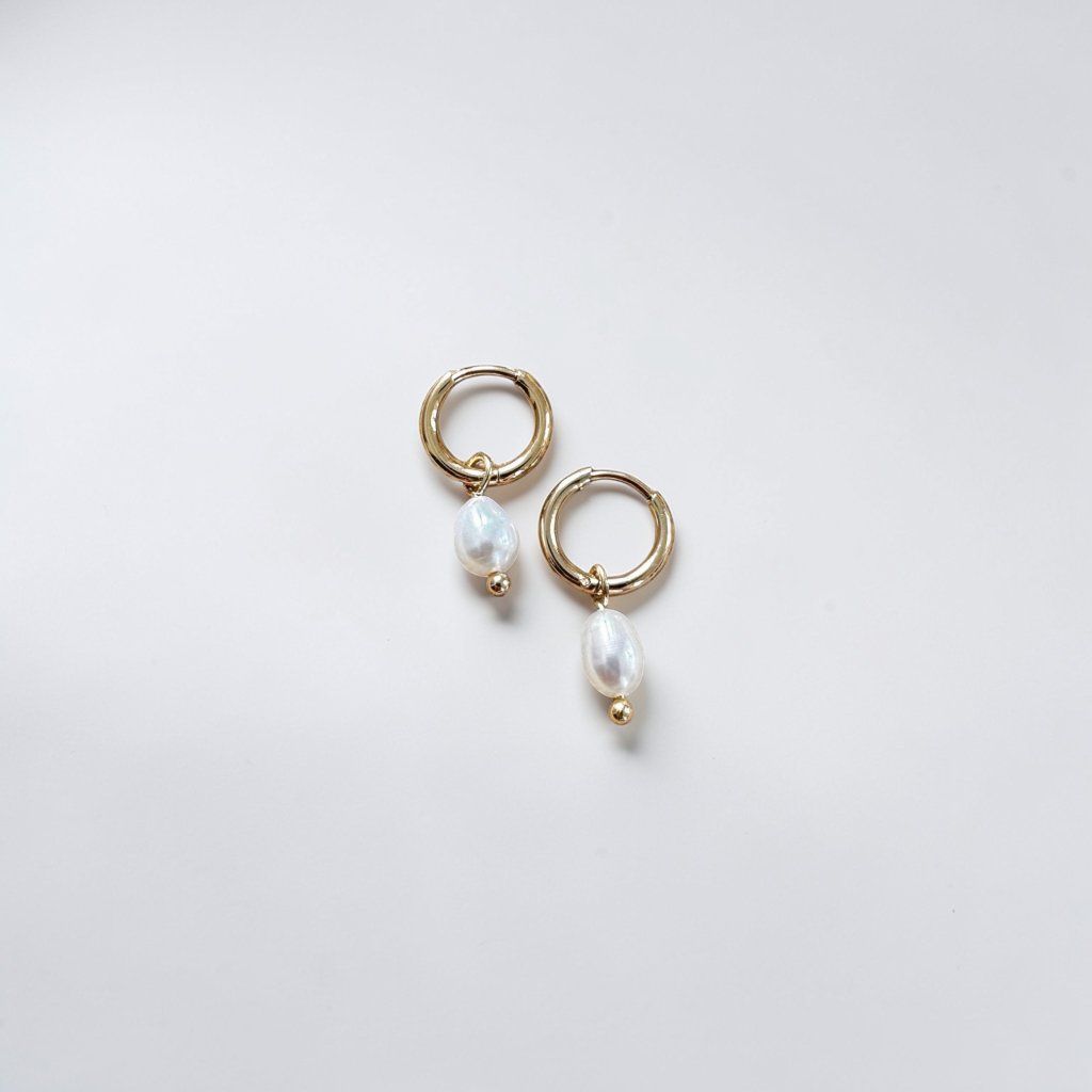 Mini Pearls – Luxusní ručně vyráběné náušnice z nerezové oceli ve zlaté barvě s nádhernou pravou říční perlou. Elegantní design s kroužkem o průměru 1,1 cm a jemnou tloušťkou 1,5 mm podtrhuje ženskost a sofistikovanost. Celková délka 2,1 cm zajišťuje dokonalou rovnováhu mezi minimalismem a luxusem.